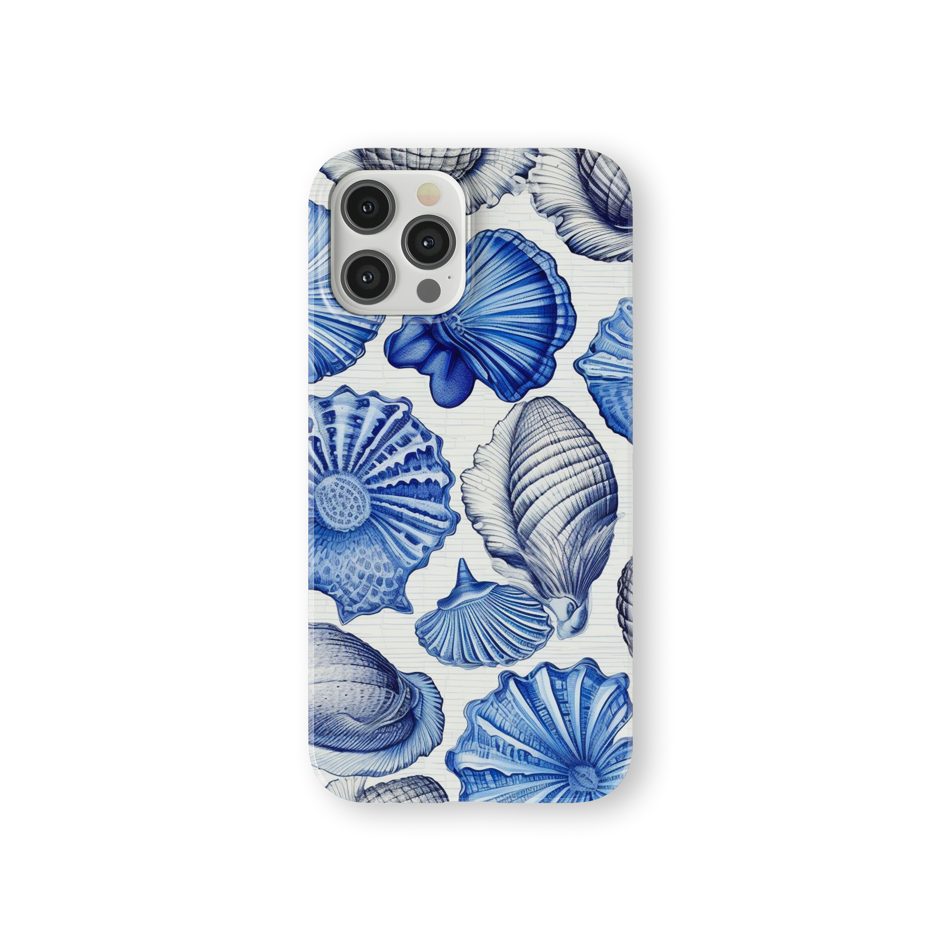 The "Shells from a Blue Beach" phone case pays homage to this magical expedition. It weaves a story of its own, bringing to life the delicate treasures collected by our dreamer. The case boasts a symphony of cerulean hues, as if the very essence of the ocean was infused into its design. The shells, meticulously captured in intricate detail, adorn the surface with their unique patterns and sublime colors.